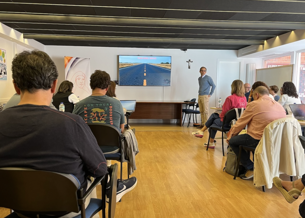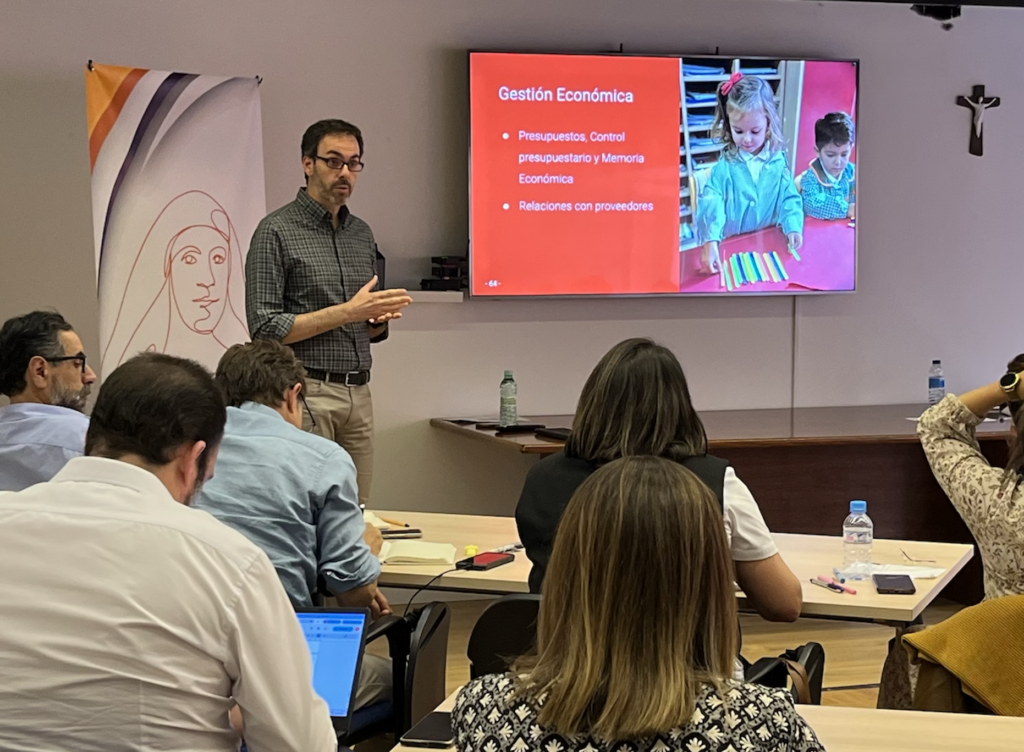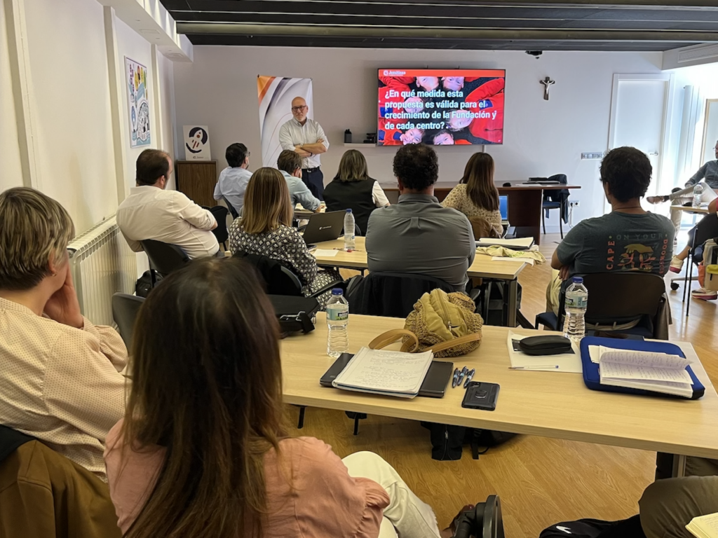 El trabajo de la mañana se comenzó con la presentación del Plan Anual para este curso. Haciendo referencia a la Estrategia de la Fundación, Javier Amores, responsable del área de Desarrollo de Personas en el Equipo de Titularidad, fue enganchando las distintas iniciativas y objetivos a abordar este curso con las líneas y objetivos estratégicos de Jesuitinas. Marco Educativo, liderazgo, formación, selección y acompañamiento a docentes noveles, comunicación, recursos… fueron algunas de las claves que sobresalieron en la presentación. Y de fondo siempre la pregunta: “¿Cómo mantener y hacer crecer la identidad en los centros de la Fundación?»