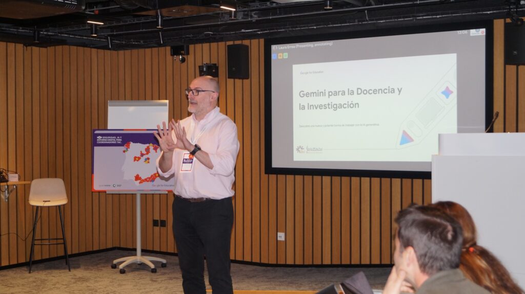 En el encuentro, acompañados por José Hernández Ortega, profesor e investigador en la Universidad Complutense de Madrid, se abordó cómo la Inteligencia Artificial está redefiniendo el papel del docente y el alumnado. De manera práctica presentó las posibilidades que herramientas como Gemini tienen en la docencia, subrayando que la IA no es una amenaza, sino un potenciador de capacidades.